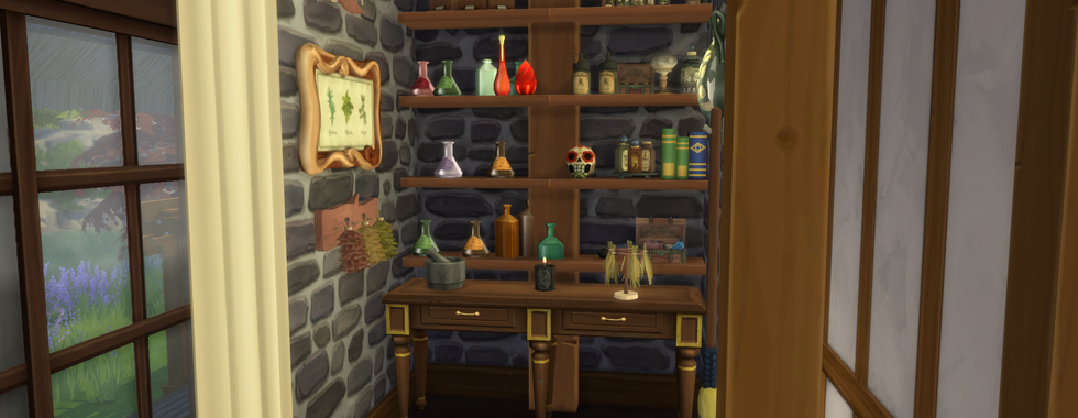 Qual bruxa iniciante que não sonha em ter um lugarzinho só seu, no meio do nada para praticar e aperfeiçoar seus feitiços? Pois seus problemas acabaram! Eis a cabaninha dos sonhos. Pequena e bem aconchegante, foi construída em Glimmerbrook em um lote 30x20. Possui 2 banheiros, 1 quarto, 1 “escritório” para a prática de feitiços e muita área verde, com direito a lago para nadar ou pescar.
